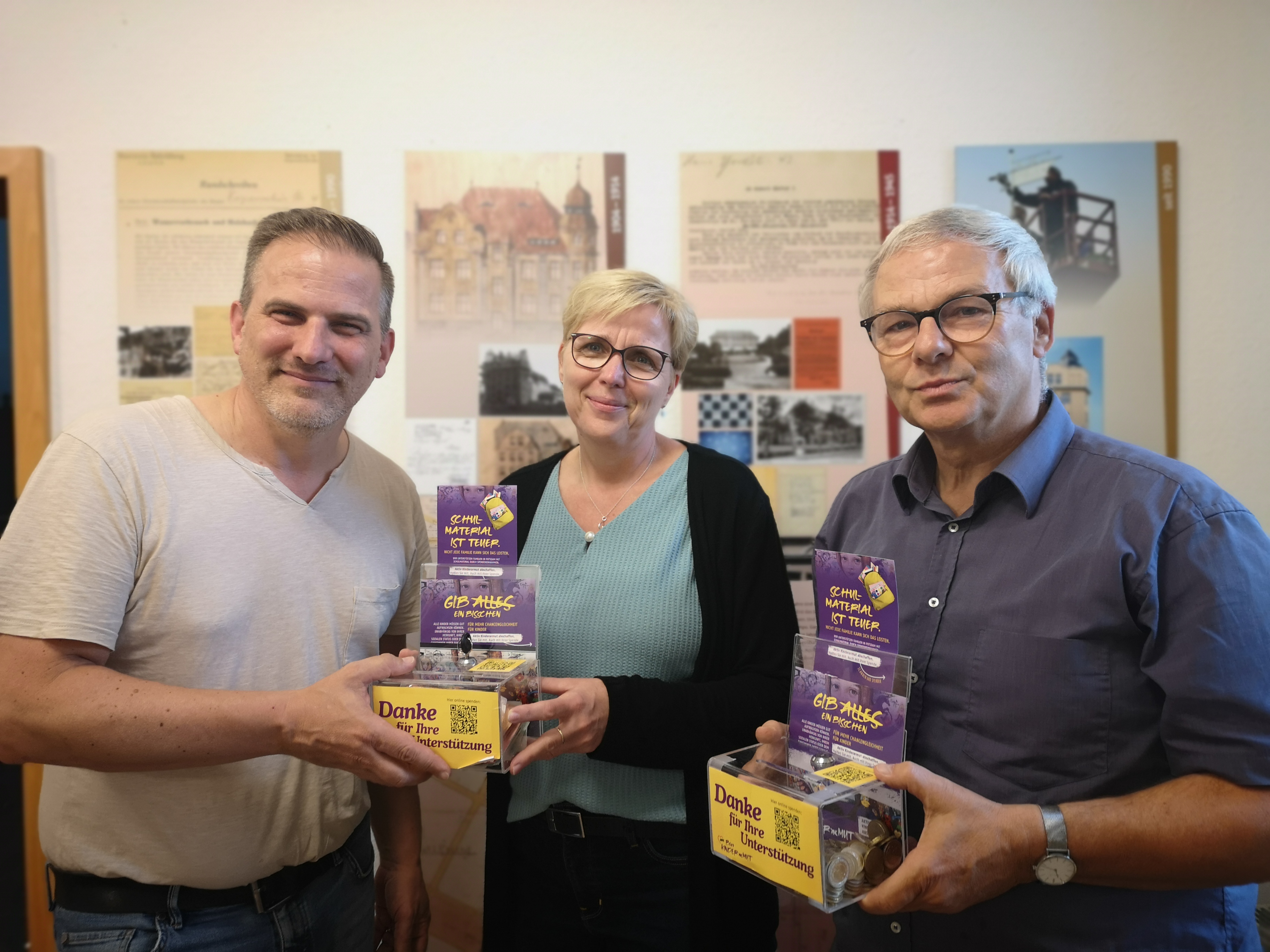 Beim Sommerfest der Wohnungsgenossenschaft Bauverein Babelsberg eG beteiligten sich die Mitglieder mit einem Kuchenbasar, um die Arbeit des AWO Büro KINDER(ar)MUT zu unterstützen. Insgesamt 14 selbstgebackene Kuchen luden am vergangenen Samstag zum gemütlichen Beisammensein und Genießen ein. Mit jedem Stück Kuchen, das an die Gäste des Festes ausgegeben wurde, füllten sich unsere Spendendosen weiter. Dabei kamen 600 Euro zusammen, die uns gestern Anke Achilles und Uwe Marz als Vorstandsmitglieder des Bauvereins übergaben.