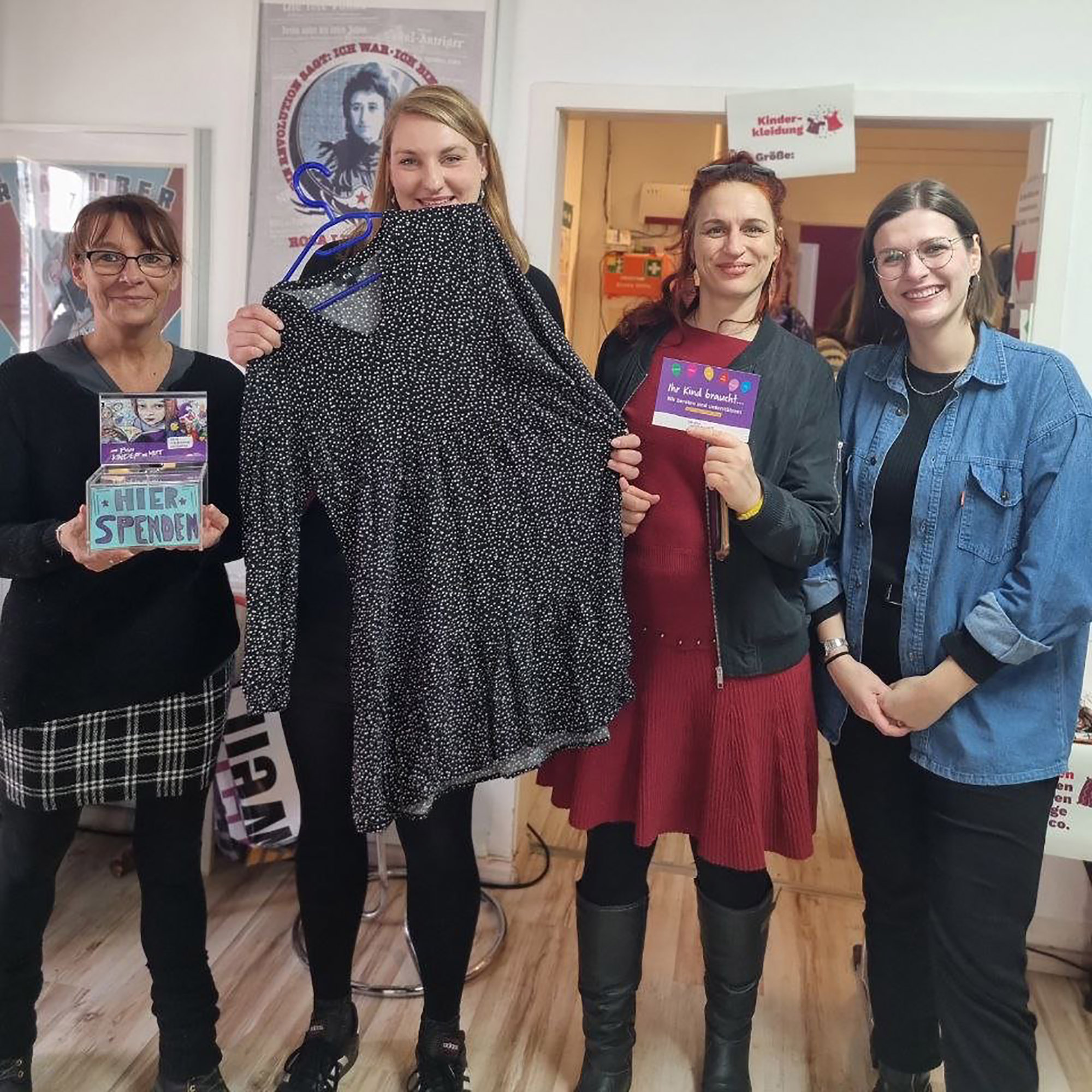 „Plaudern, stöbern, vernetzen und schmausen“ lautete das Motto der Familienkleidertauschparty vergangenen Sonntag im rotbloq - Raum für politische Kultur, in Potsdam. Organisiert wurde die Aktion vom feministischen Stammtisch der Die Linke Potsdam. Die mehr als 70 Teilnehmer*innen hatten nicht nur großen Spaß beim Probieren und Tauschen der verschiedenen Kleidungsstücke, sondern konnten auch gegen einen freiwilligen Solibeitrag bei Getränken, Snacks und Kuchen miteinander plaudern. Den Erlös von mehr als 100 Euro übergaben uns im Anschluss an die Kleidertauschparty Isabelle Vandre, Direktkanditatin für die LINKE Potsdam für den Bundestag und Lena Herenz vom Feministischen Stammtisch für unsere Projekt im AWO Büro KINDER(ar)MUT. Wir sagen ganz herzlich DANKE und wir kommen auch gerne wieder, denn Kleidertauschen macht Freude!