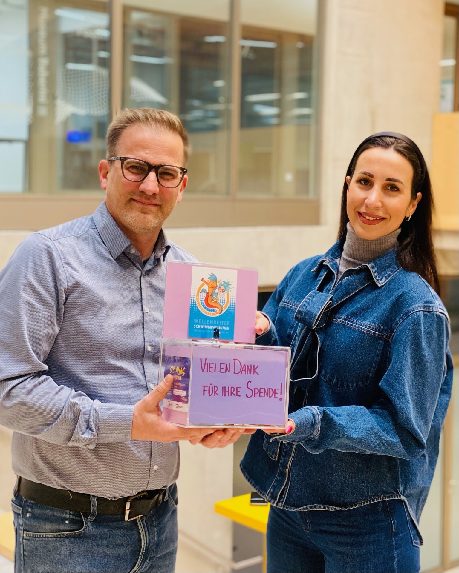 Wo, wenn nicht in Potsdam ist das Schwimmen in den umliegenden Seen ein elementarer Bestandteil der Freizeitgestaltung? Doch viele Familien können sich teure Schwimmkurse für ihre Kinder nicht leisten. Daher entschieden sich die Mitarbeiter*innen des Workhub - Campus am Jungfernsee gemeinsam mit SimpliOffice und Kramke Bau im Rahmen ihrer Weihnachtsfeier für unser Projekt Wellenreiter zu sammeln. „Wir haben in unserem Team des Workhubs viele Familien, die direkt von der Nähe zu den Seen im Sommer profitieren. Das soll nach Möglichkeit allen Kindern möglich sein, indem sie die Schwimmfähigkeit erlangen“, sagt Giulia Berger, Managerin der beauftragten Berlin Income One GmbH. Sie übergab Jörn Mensching, Leiter des AWO Büro KINDER(ar)MUT, die gesammelte Spendensumme von 560 Euro, die bar und online während der Weihnachtsfeier durch den Verkauf kleiner Weihnachtsbäume zusammenkamen. Wir danken allen Beteiligten für die großzügige Spendensumme zur Unterstützung unseres Projekts!